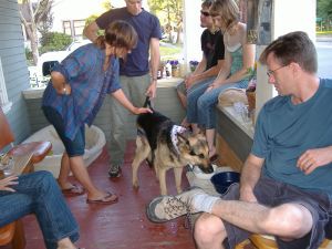 Like Dr. Canon and others have said, it is difficult, or maybe impossible, to be able to tell with any certainty if acupuncture is working. Even if Ali were to show improvements after his sessions, we can’t necessarily know if this is attributable to the acupuncture, his “normal” course of recovery, or something else (like the other therapies we are doing). But, at about $40 a session it is relatively inexpensive and I do want to try everything feasible to give him the best chance. And acupuncture will not, from what I understand, hurt him, so I am not that concerned with being able to scientifically say whether it is working or not. The more I learn about this disease and recovery from it, the less I realize is actually definitively known. Nobody really knows what the heck is going on, basically. But I can say within the last few weeks that I have noticed his right leg moving slightly in the cart where until just recently there was nothing. I am going to keep monitoring this and hoping, hoping, hoping his right leg “wakes up” so it can catch up with the left. Who knows, maybe the acupuncture is helping! But I really do think I am seeing something over the last few weeks in his right leg that wasn’t there before.