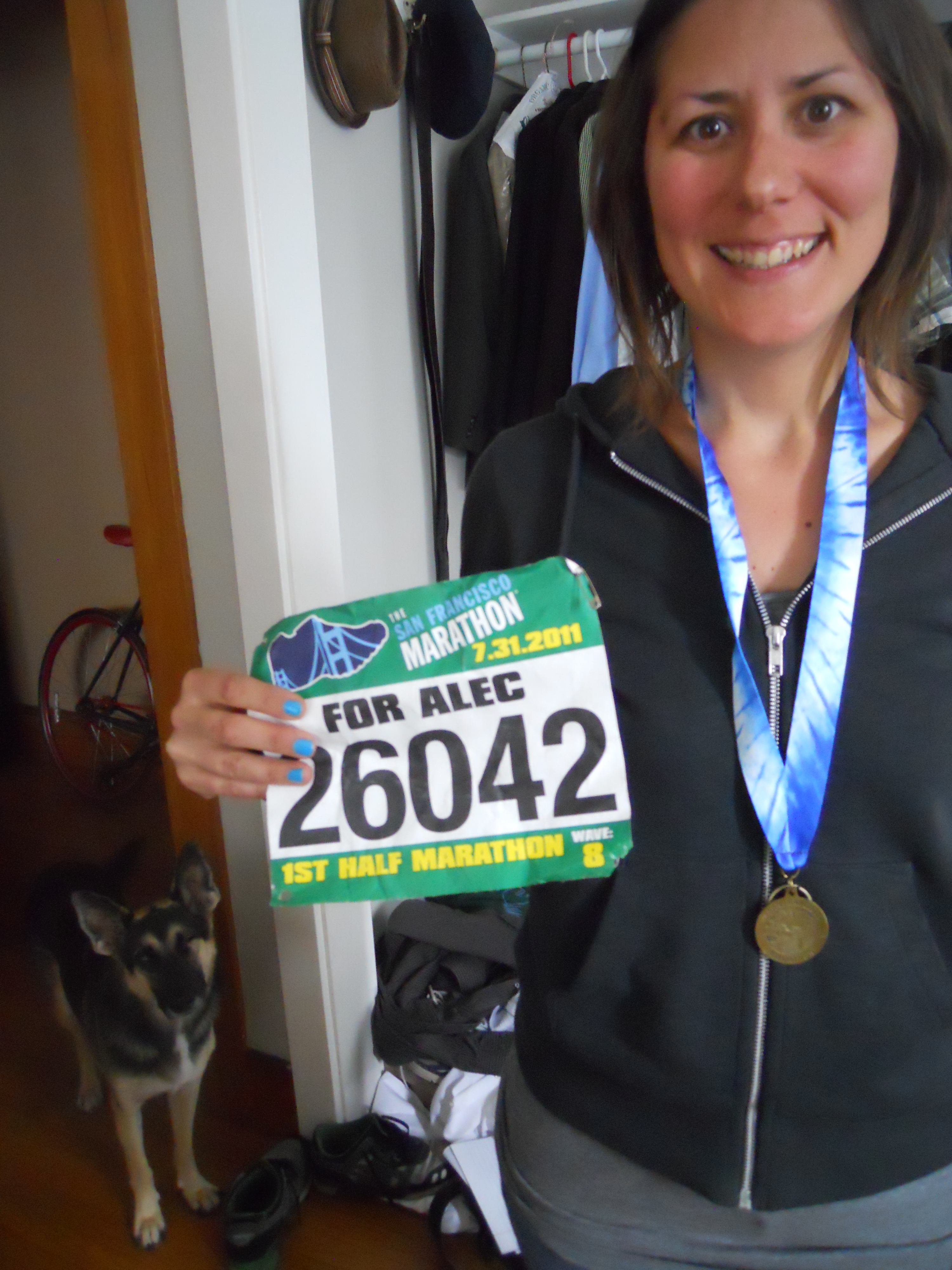 Although the training was a good distraction, I was extremely nervous when race day came. But this anxiety served a purpose too; it helped keep my mind from dwelling on what I was doing at this time last year: saying good-bye to my best friend. Without this race to preoccupy me, I would have been in a very bad place that day. My only goal was to finish, and when I actually did that (remarkably, way under the cut-off time where they sweep you onto the sidewalk) and got my little finisher medal, I was so exhilarated and exhausted that the day passed without me having a meltdown. Mission accomplished.