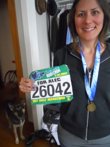 For my part, I decided to train for a half marathon about nine months after Alec died. I was not much of a runner so this was a big deal for me. Sticking to a training schedule was a good counterpoint to the disorganizing effects of grief; it gave me something healthy to do when I felt lost and scattered. It kept my body tired and my mind focused on something constructive. The race also took place on the one-year anniversary of Alec’s death, so it gave me a positive goal for this significant day – I would run for him.
